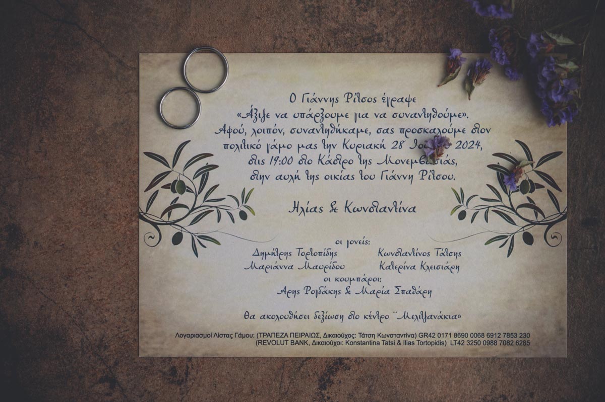 πολιτικός γάμος στη Μονεμβασιά, στο σπίτι του Γιάννη Ρίτσου